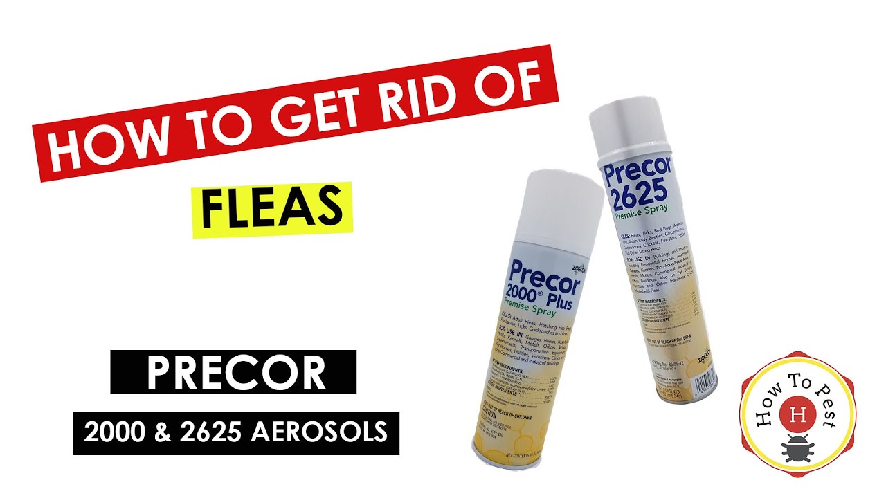 For Flea Infestations, Precor 2625 treats 2625 sq ft. To treat carpet and other areas of suspected flea infestation, hold container upside down 2-3 feet from surface, point actuator towards the surface and push button. Using a sweeping motion, apply a light uniform spray to all surfaces of furniture, rugs, carpets, drapes, and on and around all pet resting areas. Apply to infested areas such as pet beds and pet resting quarters, nearby cracks and crevices, under the edges of rugs and floor coverings, between and under cushions of upholstered